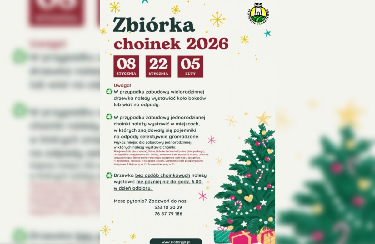 Informujemy mieszkańców, że w styczniu i lutym 2026 roku na terenie Złotoryi odbędzie się zbiórka naturalnych choinek bożonarodzeniowych.