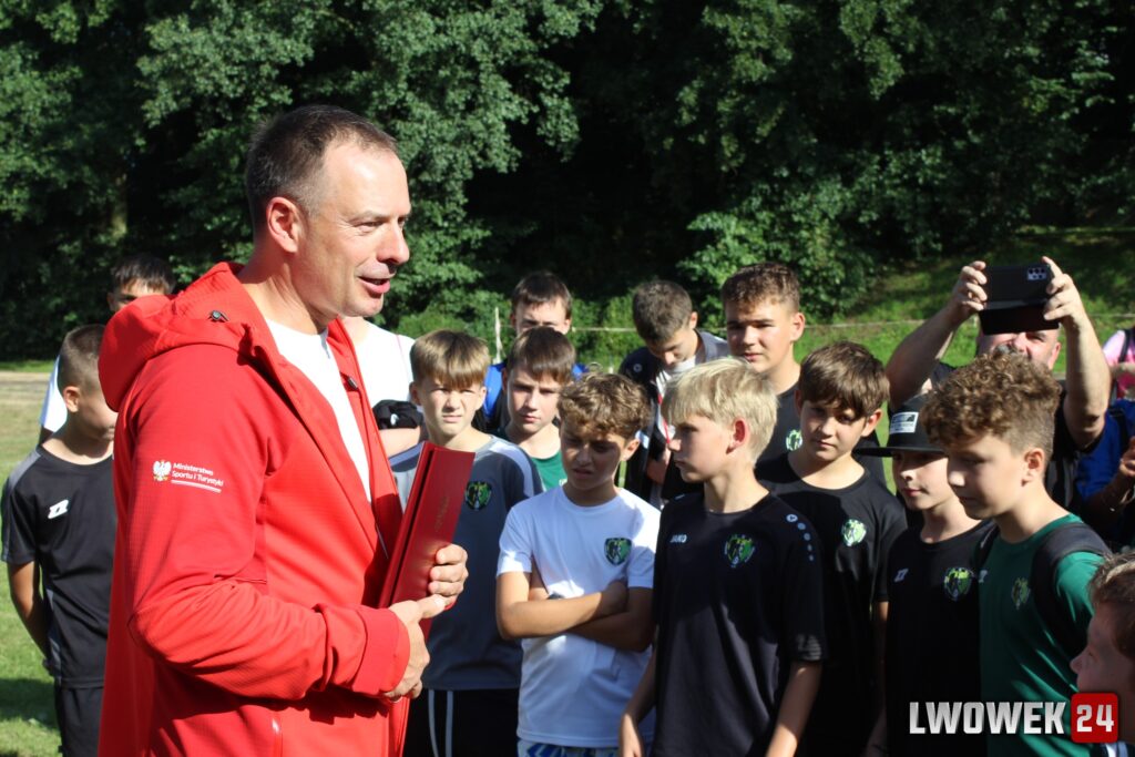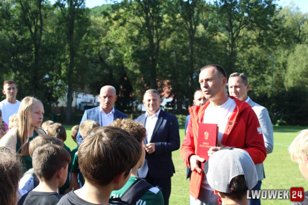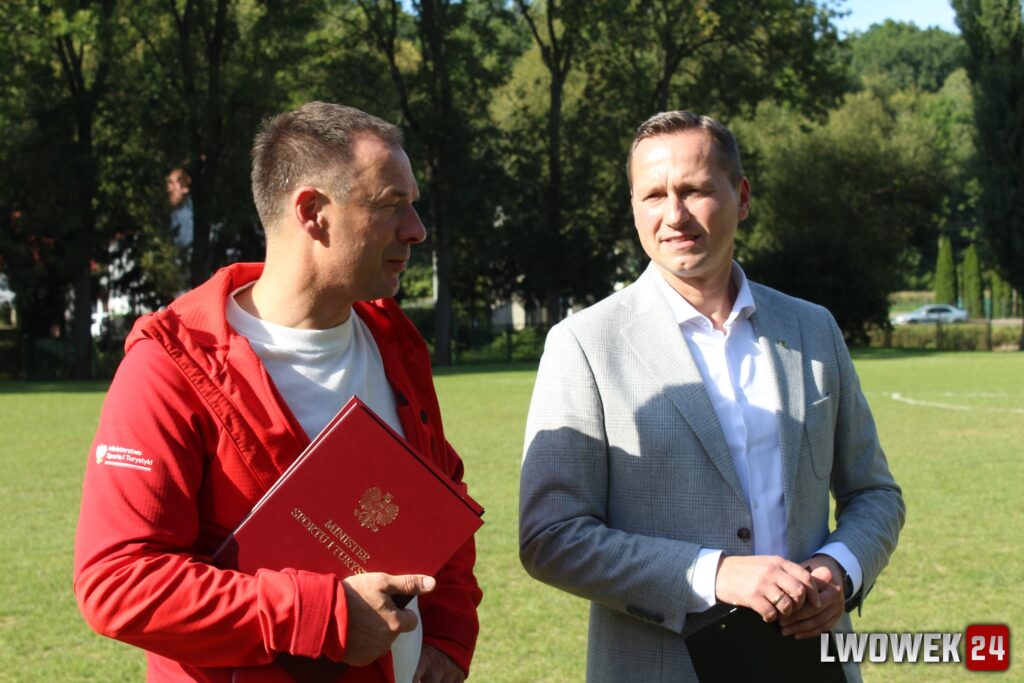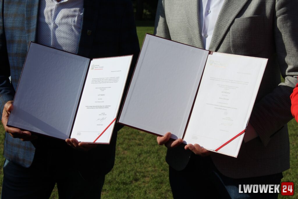 Wiceminister Piotr Borys ogłosił przekazanie znaczących środków na odbudowę i rozwój infrastruktury sportowej, a następnie wręczył Burmistrzowi i Wójtowi decyzję o przyznaniu środków:
