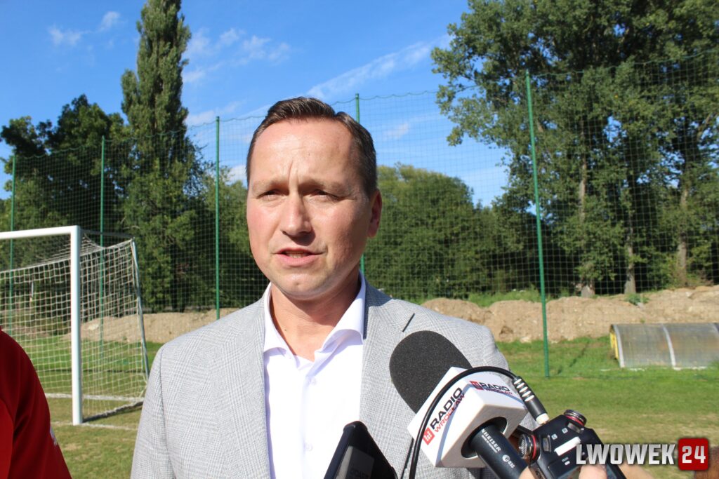 „Pamiętacie państwo ten teren właśnie dokładnie rok temu. Jak to wyglądało, jak było zalane, jak mieszkańcy bronili tę część miasta. Niezwłocznie po powodzi złożyliśmy wniosek do Ministerstwa Sportu. Dzisiaj finalizujemy to, na co tak naprawdę potrzebne są pieniądze, żeby ci młodzi adepci mogli tutaj grać”.