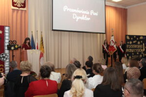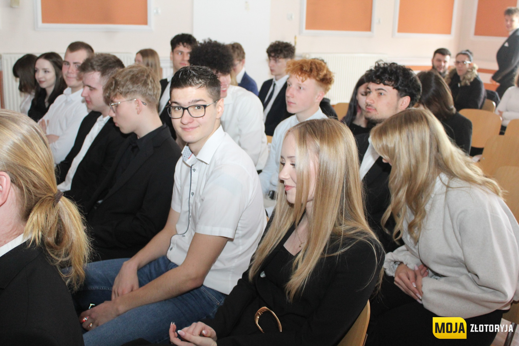 „4 lata minęły chyba dla każdego z nas tutaj szybko być może zbyt szybko. Już niedługo będziecie trzymać w ręku świadectwo ukończenia szkoły, to świadectwo to jest też taki symbol zamknięcia jednego etapu z wielu w waszym życiu.” — Beata Franczak, Dyrektor LO Złotoryja.