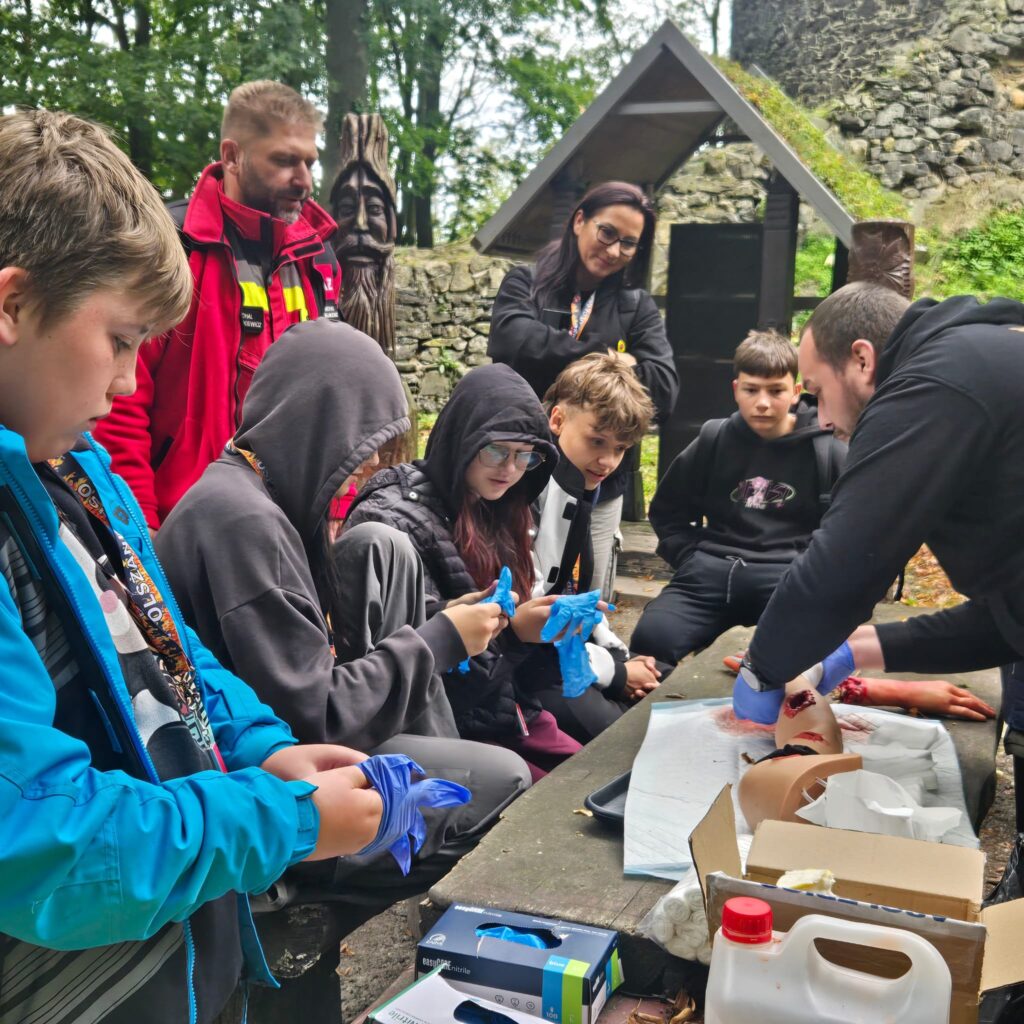 Pod koniec września pacjenci Centrum Zdrowia Psychicznego dla Dzieci i Młodzieży Szpitala Powiatowego im. A. Wolańczyka w Złotoryi wzięli udział w wyjątkowych zajęciach edukacyjnych z zakresu pierwszej pomocy. Spotkanie odbyło się w niezwykłej scenerii Zamku Grodziec, co dodatkowo nadało wydarzeniu wyjątkowy charakter.