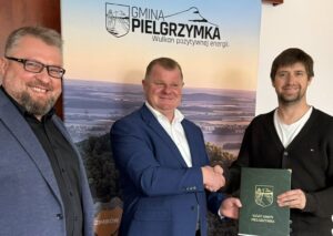 30 września została podpisana umowa z wykonawcą – Przedsiębiorstwem Transportowo-Budowlanym Sp. z o.o., które reprezentował pan Mateusz Chamski. Ze strony Gminy Pielgrzymka podpisy złożyli Skarbnik Andrzej Chodyra oraz Wójt Tomasz Sybis.