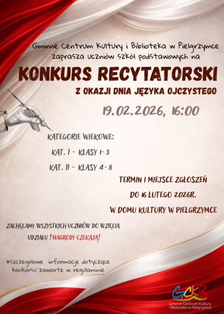 Dzieci i młodzież z terenu Gminy Pielgrzymka będą miały wkrótce wyjątkową okazję, aby zaprezentować swój talent artystyczny i miłość do literatury. Organizowany Konkurs Recytatorski skierowany jest do uczniów szkół podstawowych, którzy chcą spróbować swoich sił na scenie i podzielić się pięknem żywego słowa.