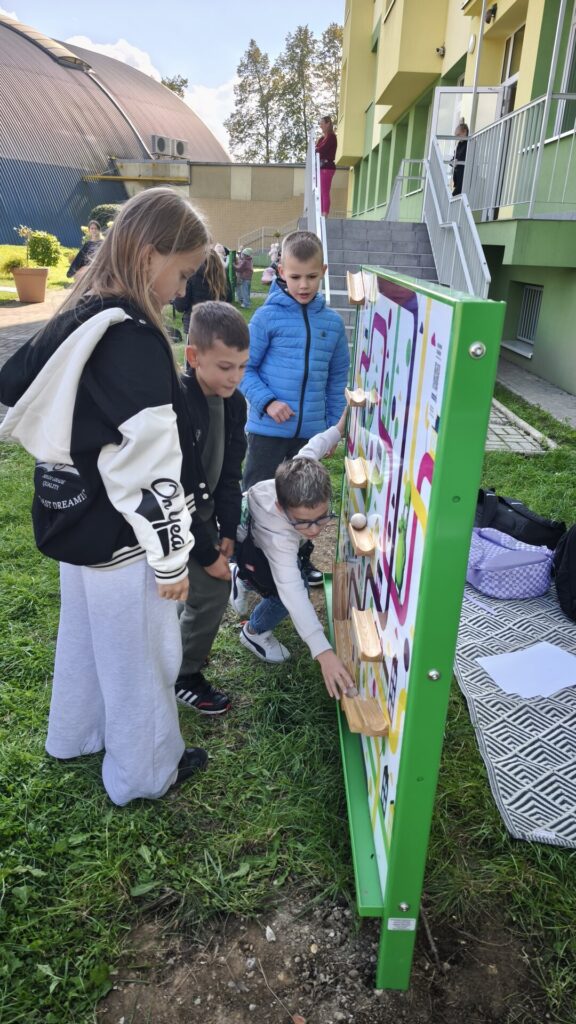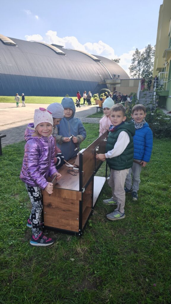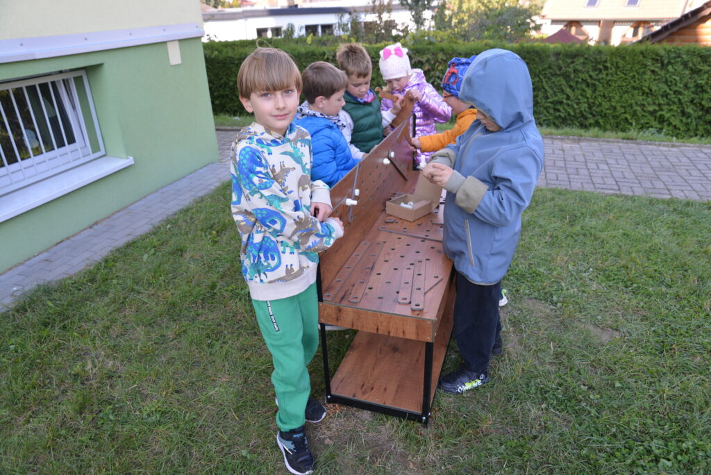 Dzieci mogą tu gotować z błota, majsterkować przy warsztacie Eu-Geniusza, bazgrać po specjalnych tablicach, a także obserwować, jak metalowe kulki toczą się po złożonym torze. To przestrzeń, w której nauka łączy się z zabawą, a codzienne eksperymenty rozwijają wyobraźnię i zdolności manualne.