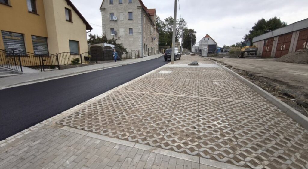Gotowe są również nowe parkingi z płyt ażurowych. Obecnie drogowcy stabilizują je, wypełniając otwory ziemią. Kończą się także ostatnie roboty brukarskie – między innymi przy przystankach autobusowych.