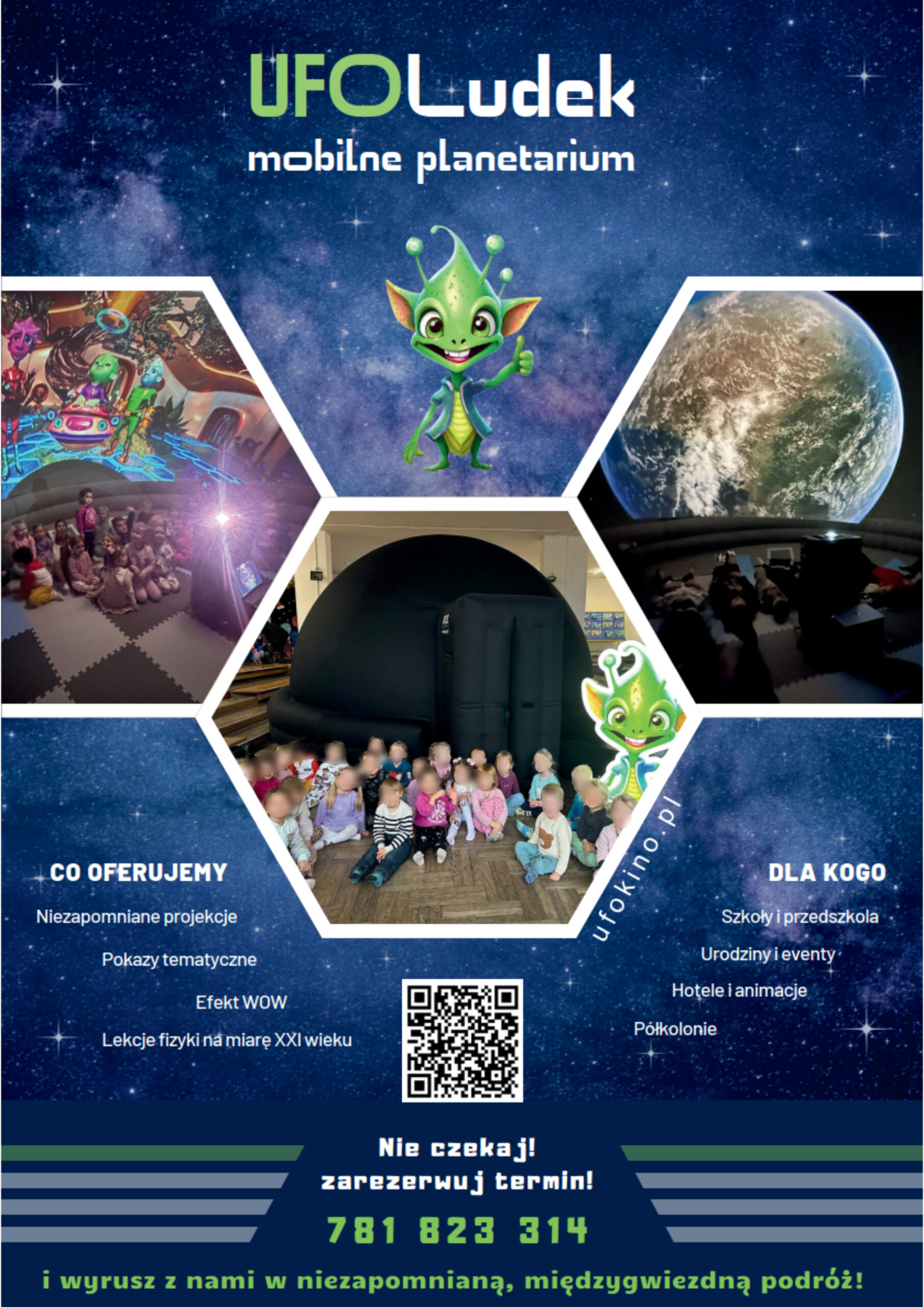 Ufoludek Mobilne Planetarium działa z Jeleniej Góry, ale z przyjemnością odwiedza również okolice Złotoryi i wiele innych miejscowości.