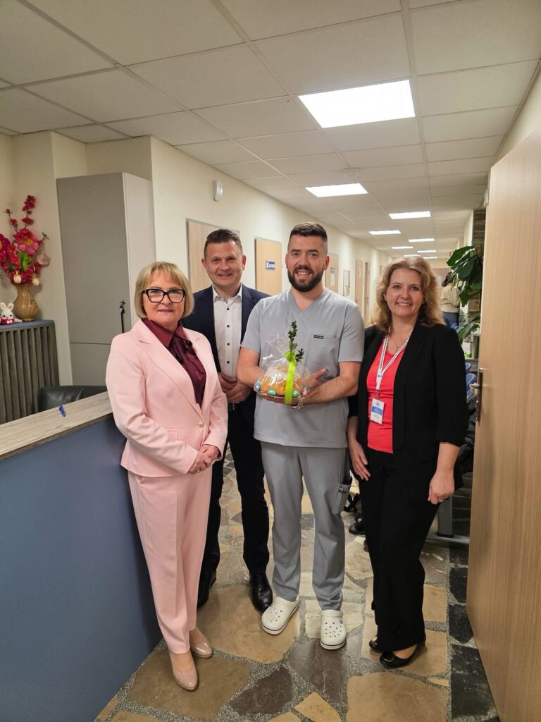 W Szpitalu Powiatowym w Złotoryi odbyło się dziś wielkanocne spotkanie, w którym uczestniczyli przedstawiciele władz powiatu. W wydarzeniu wzięli udział starosta Rafał Miara oraz wicestarosta Beata Gralak, którzy wspólnie z personelem i pacjentami uczcili zbliżające się święta.