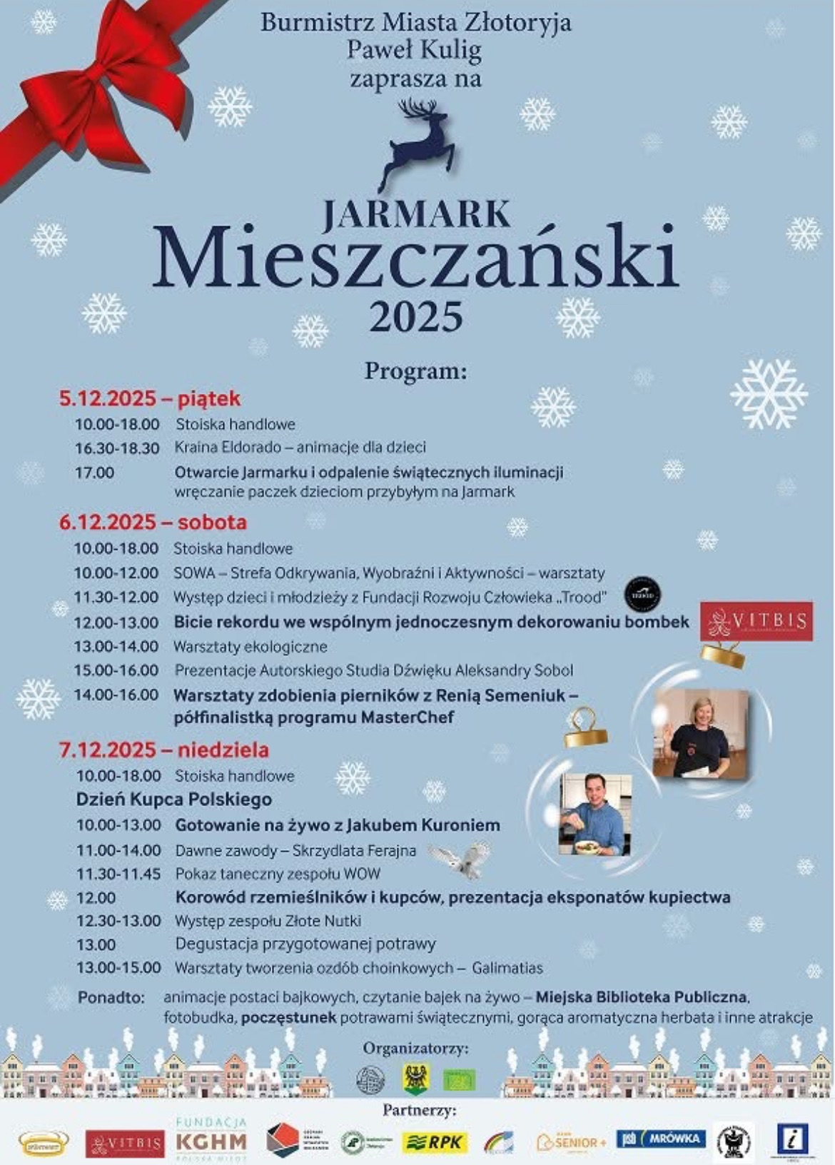 Nie możemy zagwarantować śniegu, ale dokładamy wszelkich starań, aby świąteczna atmosfera wypełniła miasto wraz z Jarmarkiem Mieszczańskim. Niezależnie od tego, czy Złotoryja zostanie otulona białym puchem, czekają nas liczne atrakcje i wyjątkowe wydarzenia.