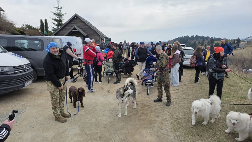 Aż 18 osób z fundacj PROM ze Złotoryi pokonało kamieniste podejścia o własnych siłach. Każdy ich krok był manifestacją niezłomności i hartu ducha. Specjalna wataha psów, wpięta w uprzęże, pomagała ciągnąć 4 uczestników na wózkach.