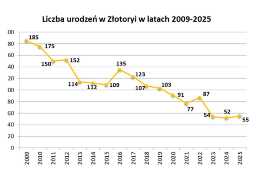 Optymizm studzi jednak fakt, że liczba urodzeń wciąż utrzymuje się na bardzo niskim poziomie, a znacznie przewyższa ją liczba zgonów. W 2025 roku zmarło aż 200 mieszkańców Złotoryi, czyli o 36 więcej niż w 2024 r. W efekcie przyrost naturalny wyniósł minus 145 – jeden z najgorszych wyników w ostatnim ćwierćwieczu.