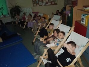 Jednym z najbardziej wyczekiwanych momentów był oczywiście seans filmowy. Tytuł pozostawał niespodzianką, co tylko podsycało ciekawość i sprawiło, że projekcja była jeszcze bardziej emocjonująca. W trakcie oglądania nie brakowało śmiechu, skupienia i spontanicznych reakcji, które najlepiej pokazują, jak bardzo takie inicjatywy są potrzebne.